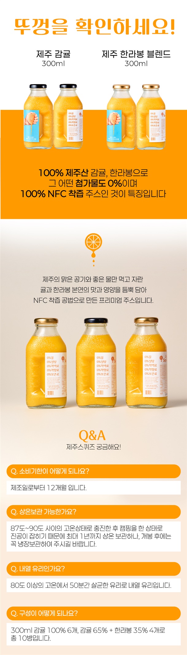 100% 제주산 감귤과 한라봉만 착즙합니다.