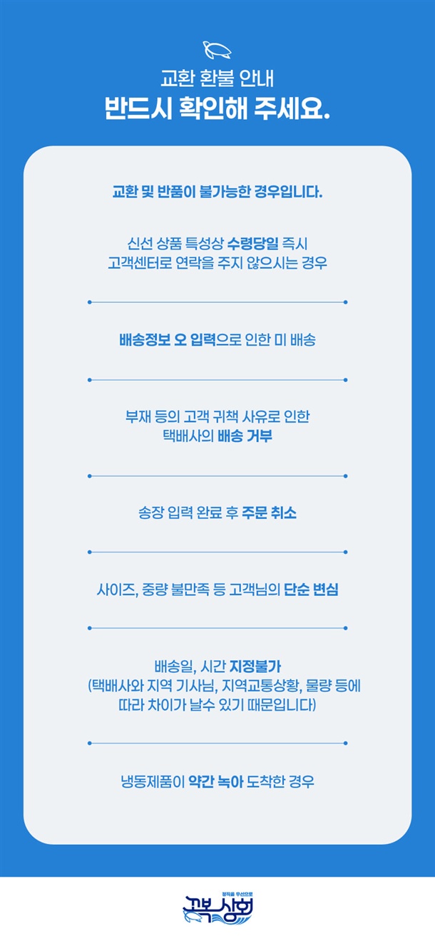 · 일부 상품에 대해서 교환/반품 정책이 위와 상이할 수 있습니다.